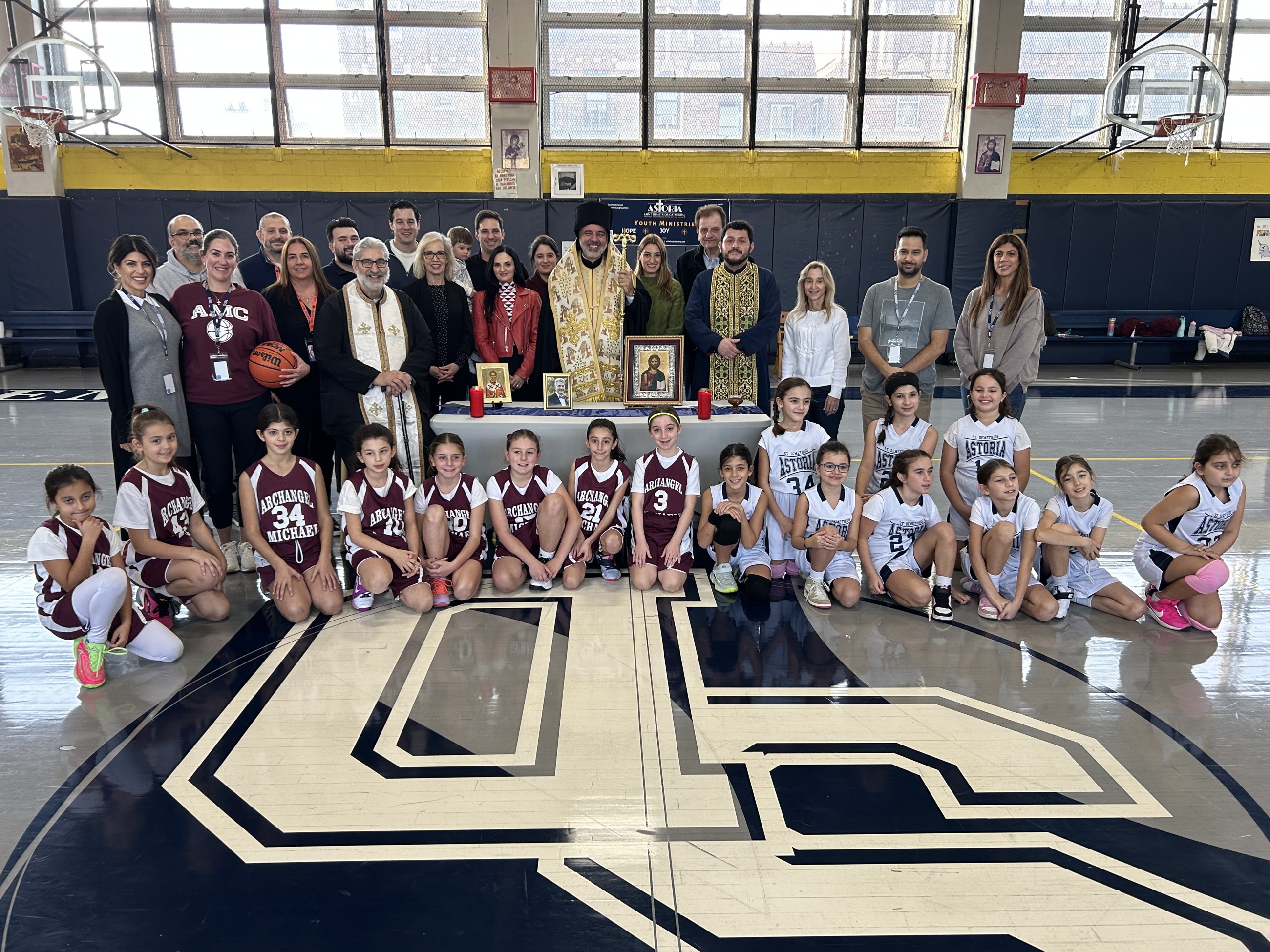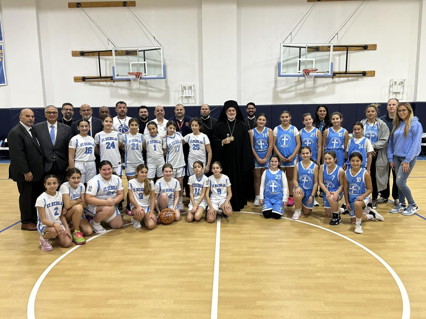 Today, the G3 Division game of the Greek Orthodox Basketball League, between St. Nicholas and St. Demetrios Merrick became even more meaningful as we were blessed with a visit from His Eminence Archbishop Elpidophoros. Before tip-off, His Eminence took time to speak with the children, offering words of encouragement that reflected his deep love, warmth, and compassion for our youth.